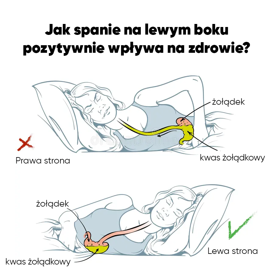 Choć serce leży głównie po lewej stronie, spanie na lewym boku pozwala na bardziej naturalny drenaż limfatyczny i przepływ krwi do aorty z mniejszym oporem.